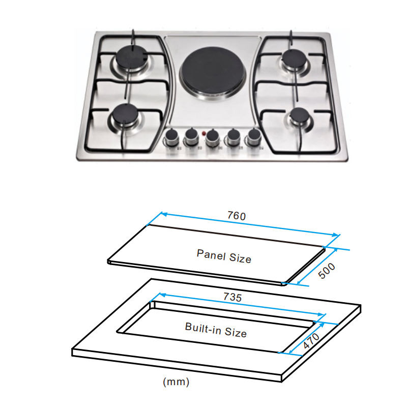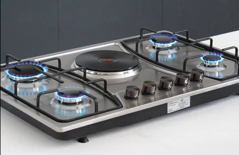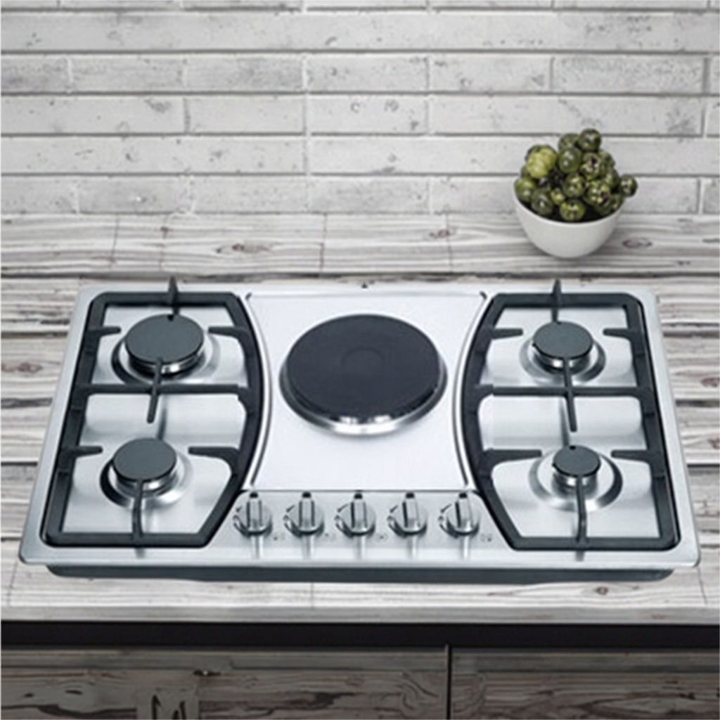 Features: Five burners, Stainless steel, Auto-ignition, Safety device(Optional), Easy cleaning, Durable design, Cast iron, Efficient cooking